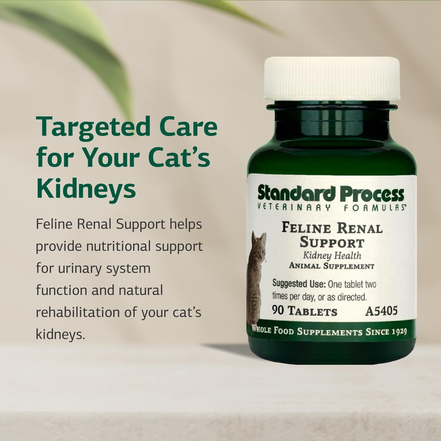 Standard Process Inc. Feline Renal Support - Cat Supplement to Maintain Kidney & Urinary Health, Cat Supplies with Whole-Food Based Ingredients, Feline Supplement to Aid Renal Function - 90 Tablets